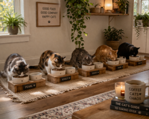 Five personalities. Five opinions about where to sit, what belongs on the counter (apparently nothing stays there), and whether 3am is a great time to run full speed through the house.